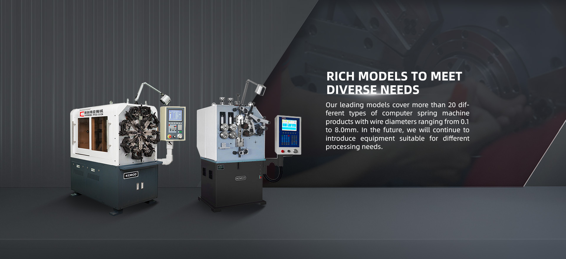 KCT-20B three/four-axis CNC universal spring forming machine, referred to as 20 type spring machine (or 20 type computer machine/20 type universal machine), processing wire diameter φ0.2-2.5mm, suitable for processing various precision pressure springs, tower springs, single/double torsion springs, pull springs, flat wire springs, special-shaped springs and complex wire forming and other products, such as battery springs, toy springs, lighting springs, clip springs, brake springs, lock hoop springs and scroll springs, etc.